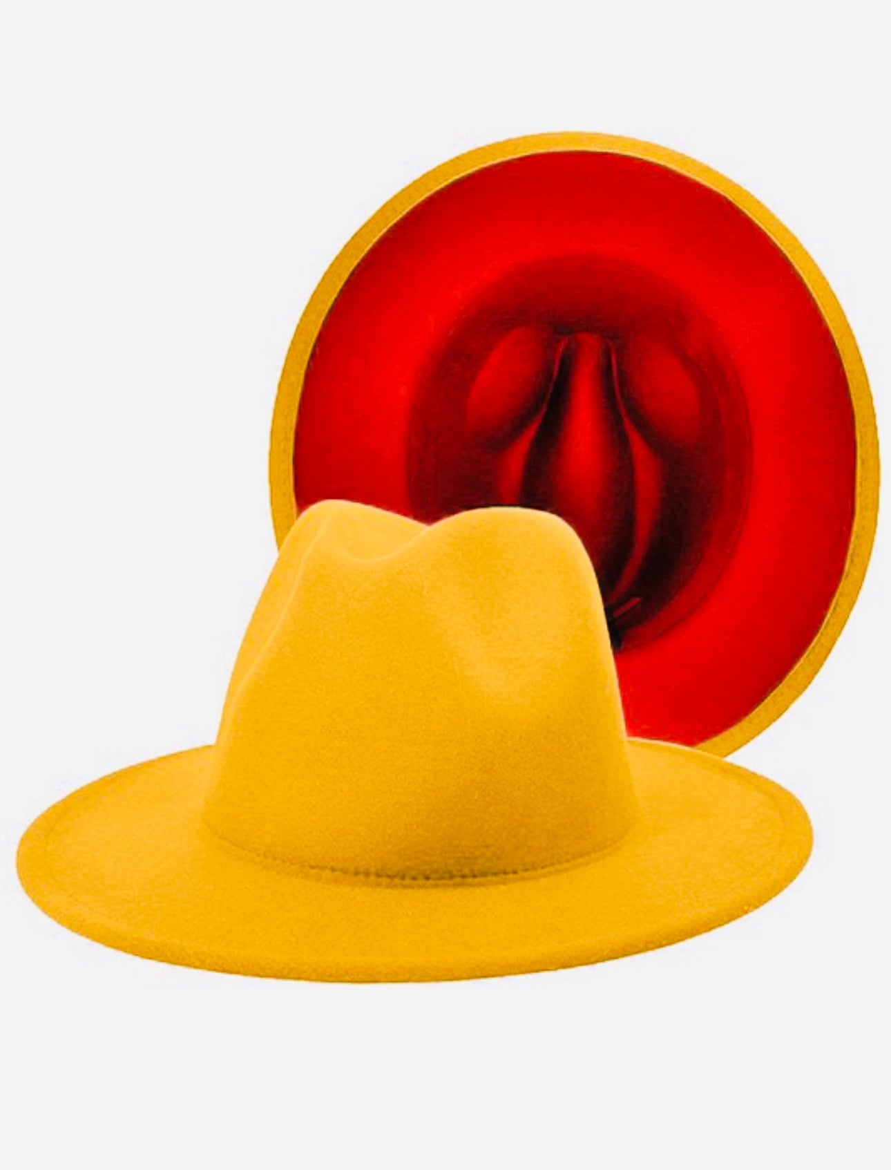 Turn heads with this vibrant yellow fedora, featuring a striking bold red lining under the brim for a vibrant and playful contrast. The sunny yellow exterior radiates energy and confidence, while the hidden red detail adds a daring, stylish twist that makes the hat truly stand out.